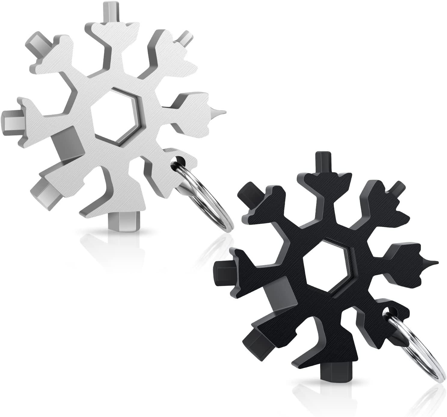 2 pack Desuccus 18-in-1 Snowflake Multi Tool; Bottle Opener/Flat Phillips Screwdriver Kit/Wrench; Stocking Stuffers for Men(Standard-Stainless Steel)