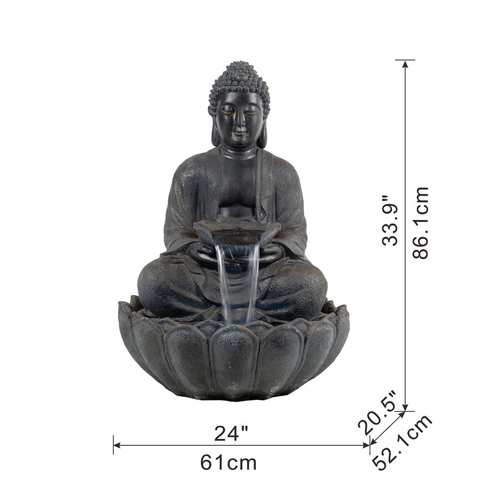 Home > 24x20.5x34" Dark Gray Buddha Statue Water Fountain, Indoor Outdoor Polyresin Fountain with Light