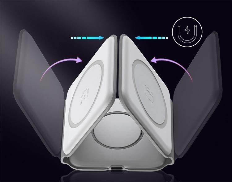 Home > 3 In 1 Magnetic Foldable Wireless Charger Charging Station Multi-device Folding Cell Phone Wireless Charger Gadgets