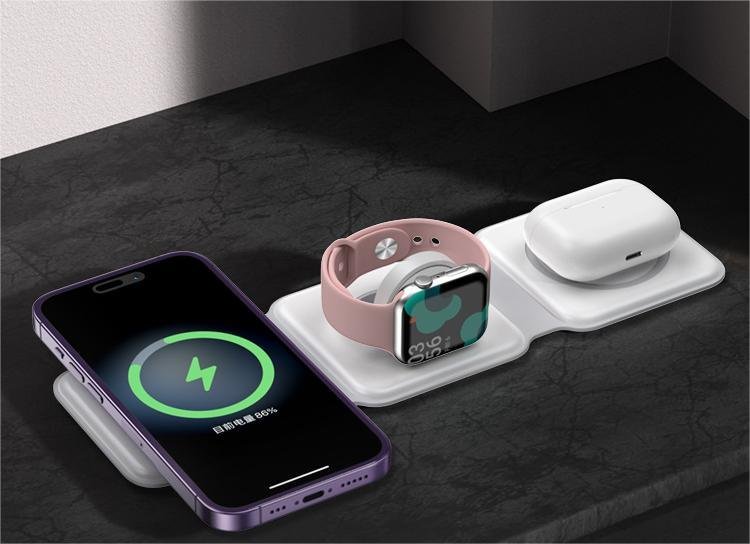 Home > 3 In 1 Magnetic Foldable Wireless Charger Charging Station Multi-device Folding Cell Phone Wireless Charger Gadgets