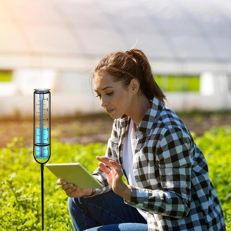 2, [ Superior Material ] Rain Gauge Stake is transparent, textured, clear, and bright, made of high-quality glass for the rain gauge tubes, effectively avoiding the problem of unclear scales caused by reflections or transparency.