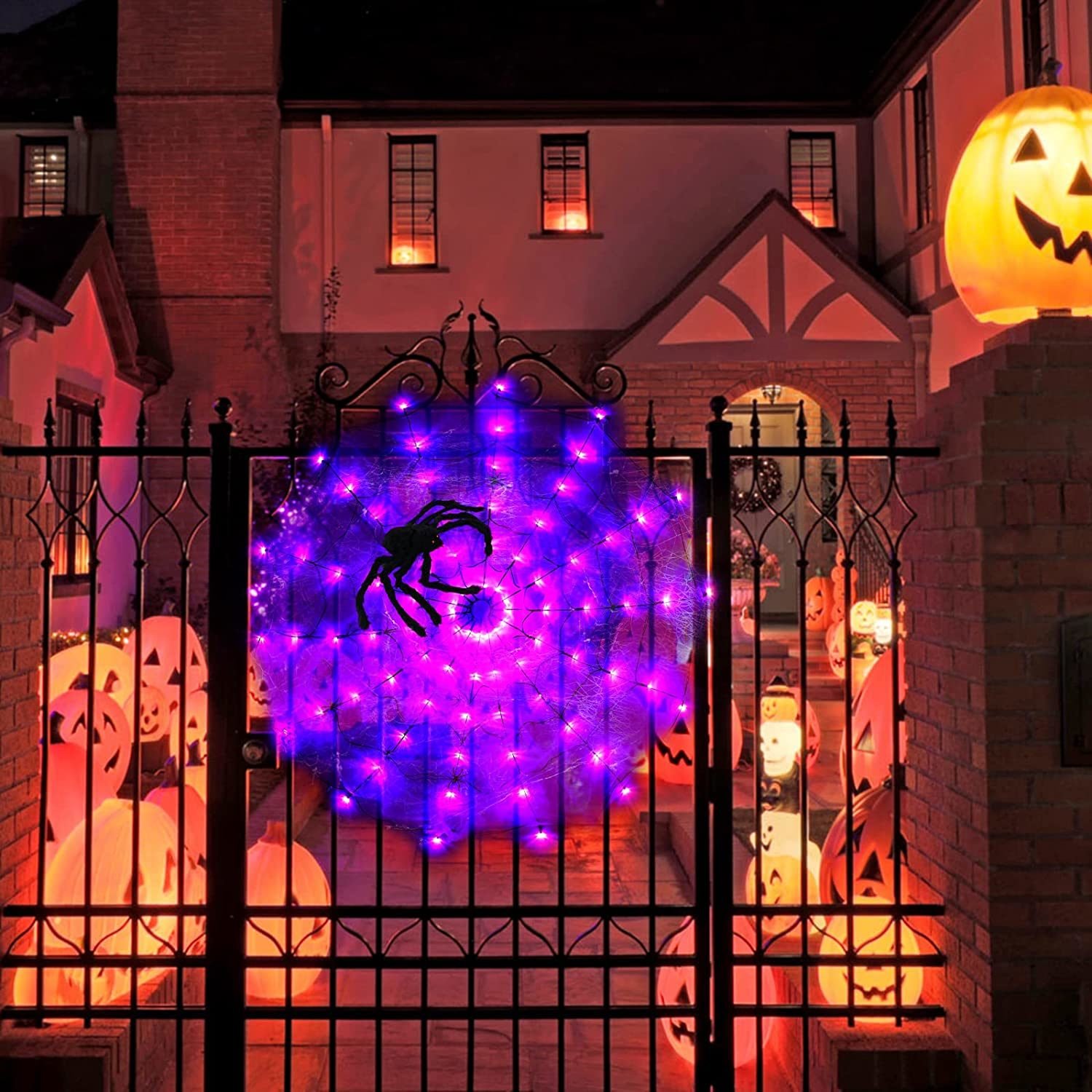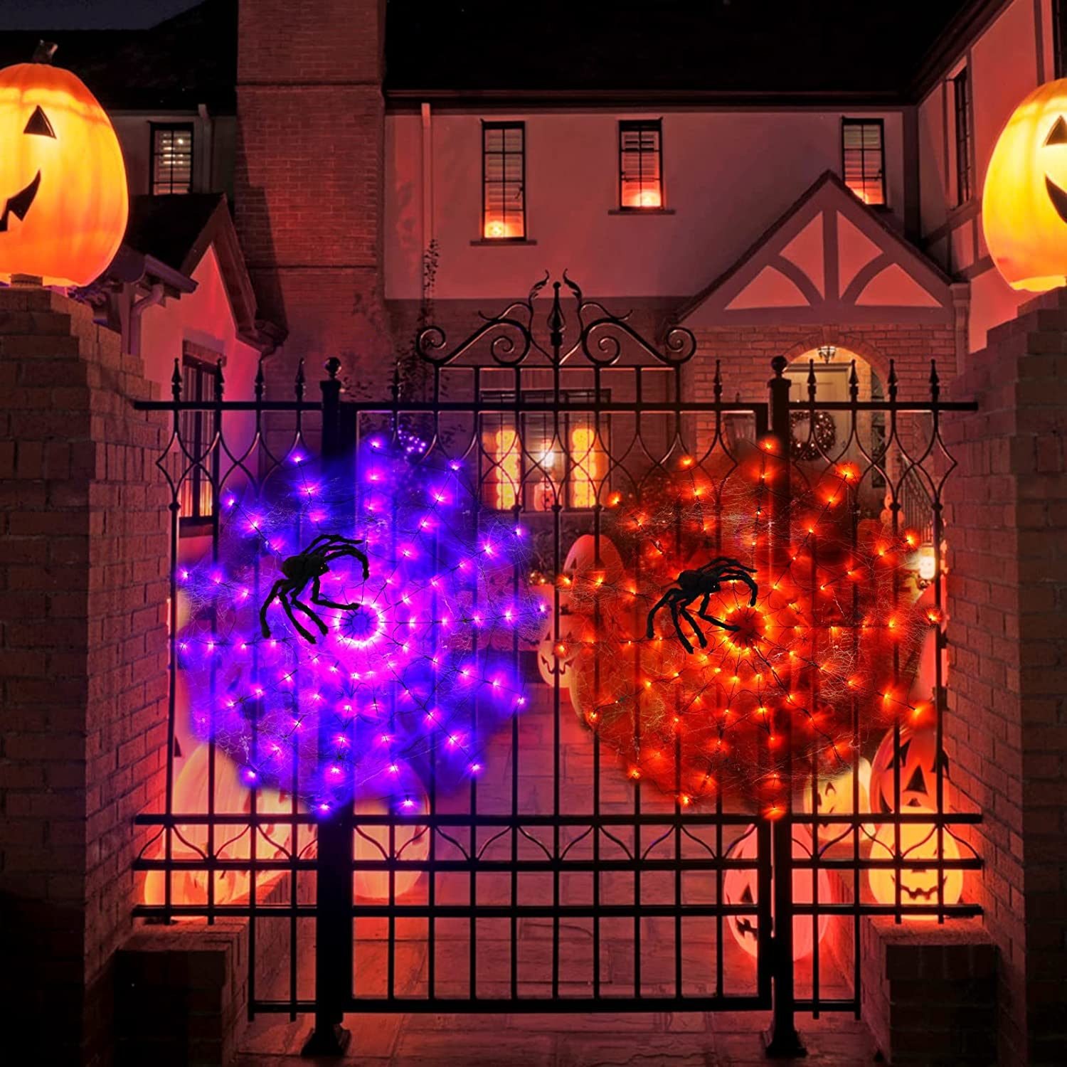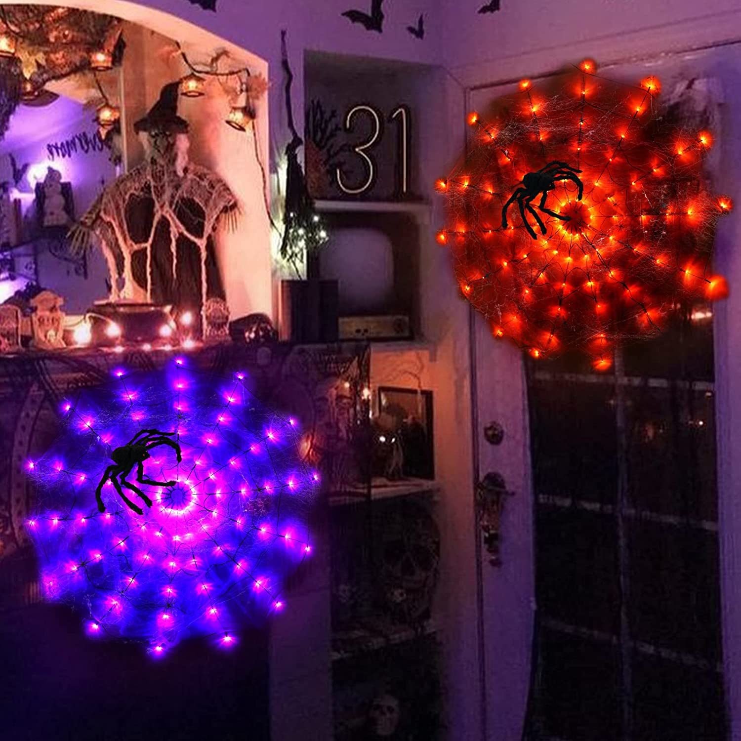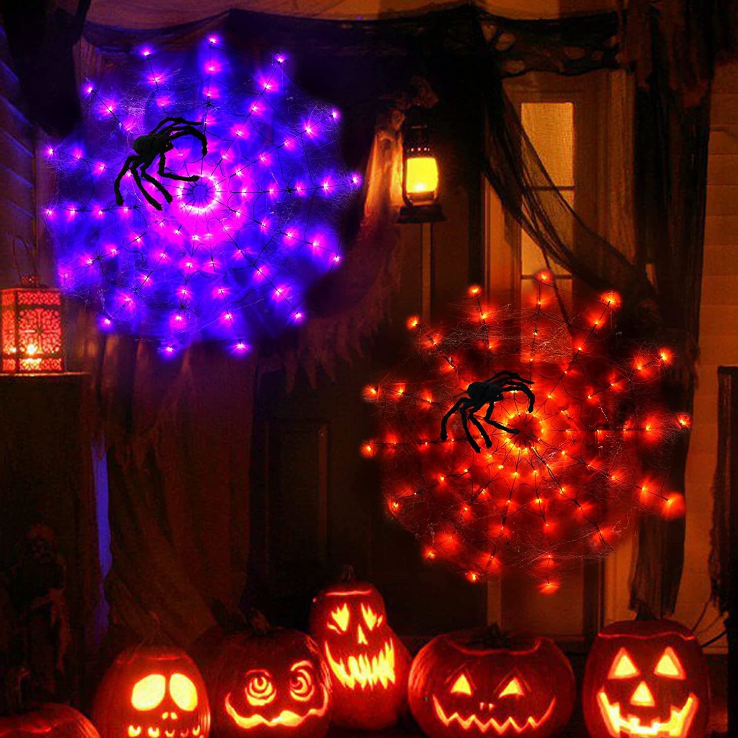 [Light Up Spider Web]:Spider web lights adopts LED high-brightness lamp bead, bright, energy-saving, waterproof and durablecan hang it in walls, yard, hedges and fences, Very suitable for Halloween theme parties, masquerade and masquerade parties, bars and horror houses.