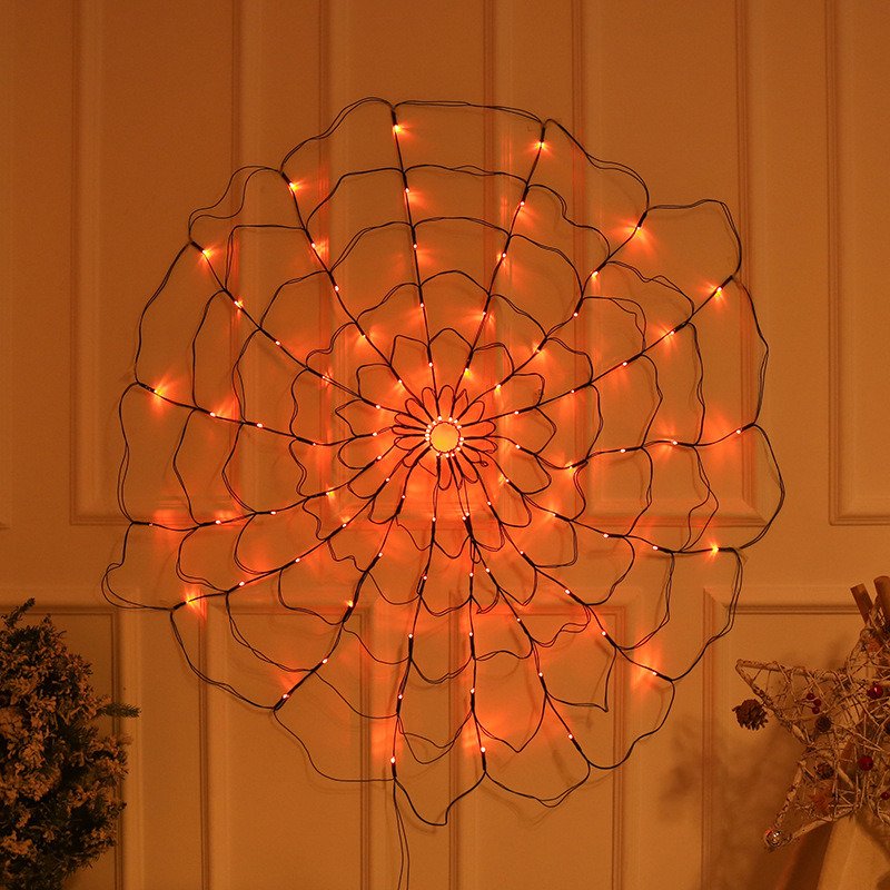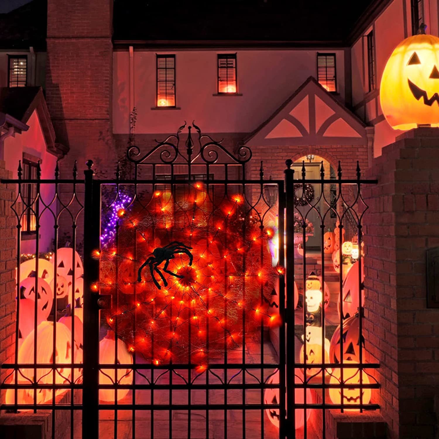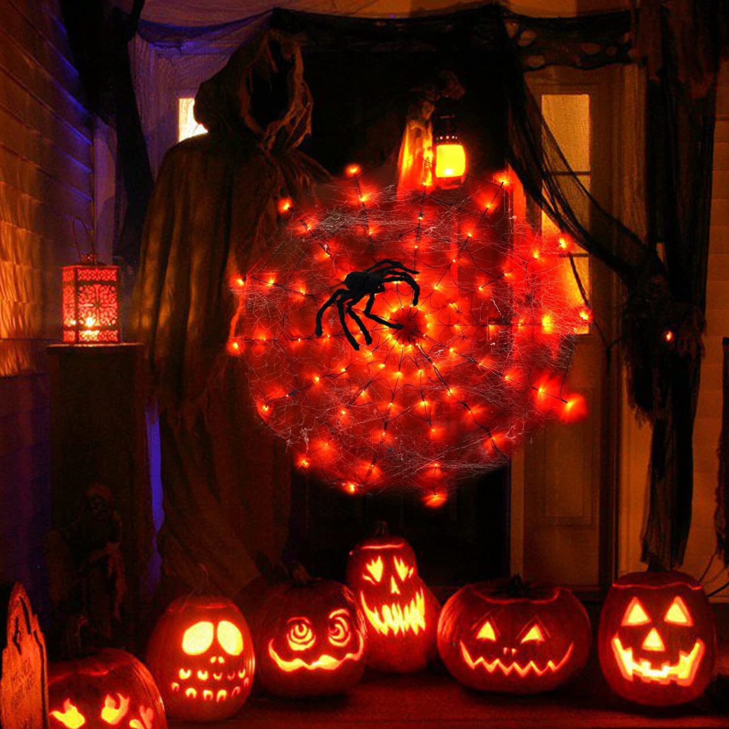 [Light Up Spider Web]:Spider web lights adopts LED high-brightness lamp bead, bright, energy-saving, waterproof and durablecan hang it in walls, yard, hedges and fences, Very suitable for Halloween theme parties, masquerade and masquerade parties, bars and horror houses.