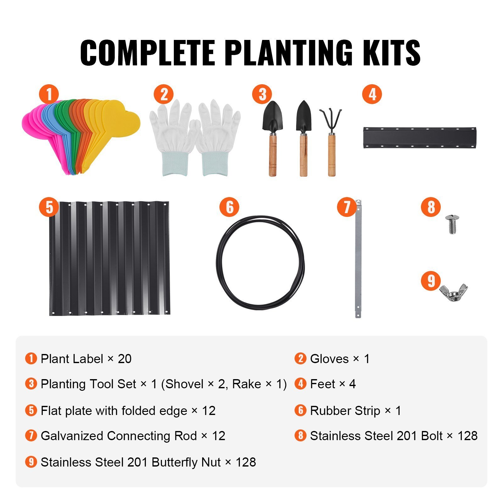 1.Your Security Comes First: You no longer have to endure hand injuries while gardening. You will be ready to create the perfect garden and show off your skills! The edges of our raised garden bed are all folded and feature rubber strips, preventing injuries and fatigue. We also provide gloves to ensure your security during installation and gardening. It's about time you brought your garden to life.